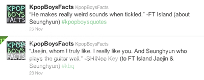 1. AWWW, SO CUTE!2.EVEN SHINEE TALKS ABOUT FT ISLAND, HAHAHA3.LOL, HONGKI! WHY YOU SAY LIKE THAT!4.AWWW, JONGHUN, YOU SO SWEET :)5.NAUGHTY HONGKI!